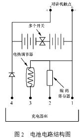 从电池的电路结构(见图2)可以看出,电池之间用了多个防止电池短路的开关;并在充电2脚设置了编码寄存器,用于识别电池类型并提供合适的充电电流。从这里还可看出,如果电池是仿冒产品,则不能进行充电。