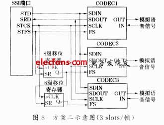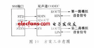 图7为方案二的连接示意框图,DSP中的SSI端口的配置与方案一的完全相同。