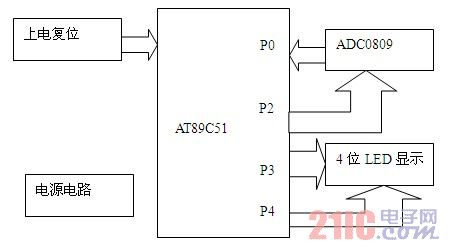 采用NS公司的分辨率为8位的逐次比较型的高精度的模数转换器ADC0809,ADC0809是带有8位A/D转换器、8路多路开关以及微处理机兼容的控制逻辑的CMOS组件。它是逐次逼近式A/D转换器,可以和单片机直接接口。把采取的电压进行处理然后通过单片机的P口送到单片机然后经过程序处理,由LED电路把电压数值显示出来。单片机加上外围的串口显示电路由74LS245和数码管三极管组成。
