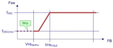 图1:NCP1237/38/87/88在轻载时采用频率反走技术降低开关损耗
