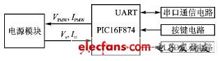 电源模块和单片机控制模块。电源模块是以PWM芯片为核心的AC—DC变换器,PWM芯片采用安森美半导体的电流型PWM控制器NCP1200作为控制芯片。单片机控制模块采用美国微芯公司的PIC16F874作为微控制器,主要实现电流电压信号的采样、显示、按键输入、串口通信以及为电源模块提供电压电流参考等功能。两个模块的关系可以用图3来说明。
