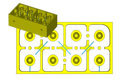 采用CST MWS模式降阶求解器能够快速仿真任意结构形状的高Q值金属腔体带通和带阻滤波器,包含各种复杂的交叉耦合(如下图中三段兰色线所示的交叉磁耦合)。它是将滤波器整体进行仿真,而不是经典的单腔双腔加互耦的局部分析法。
