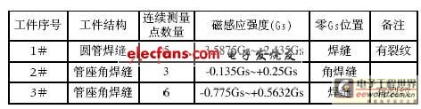 实验方式:便携式磁记忆检测仪与俄罗斯TSCM-2FM应力集中检测仪同时对工件相同点进行应力检测,便携式磁记忆检测仪的检测结果如表1。