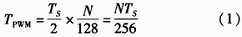 按音量的衰减比例调整脉宽时,脉宽的时间由式(1)决定。式中TPWM为脉宽时间,N为A/D读入的衰减量,范围是0~128的连续量,TS为音源信号的周期。
