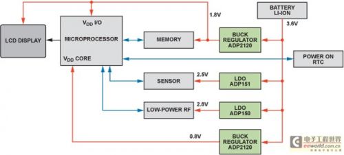 智能手机、平板电脑、数码相机、导航系统、医疗设备和其它低功耗便携式设备常常包含多个采用不同半导体工艺制造的集成电路。这些设备通常需要多个独立的电源电压,各电源电压一般不同于电池或外部 AC/DC电源提供的电压。