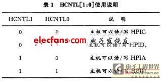 TMS320VC5402 DSP具有8位的增强型HPI接口,其专门用于DSP与其他总线或CPU进行通信。主机是通过HPI控制寄存器(HPIC),地址寄存器(HPIA),数据寄存器(HPID)访问DSP的片内RAM,从而实现与DSP通信的。DSP只能访问HPIC。HPI寄存器的选择由HCNTL[1:0]脚在PCI总线地址有效期实现,说明如表1所示: