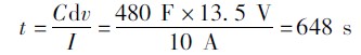根据式(1) ,13. 5 V、480 F 的电容器充电时间为( 充电电流为10 A):
