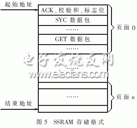 在同一个通信过程中,ACK序列号转换、校验和的转换、发起连接的SYN、GET数据包和定时器标志位等信息都需要存储,由于每个数据流需要存储的内容较多,单一的地址已经无法满足存储要求。此处存储管理采用页面式的管理方式。将整个存储空间分为若干页面,每个数据流信息存入一个页面中。SSRAM的存储格式如图5所示。