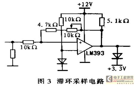 采用锁相法实现频率跟踪控制。使用KT20A/P型电流传感器和KV20A/P型电压传感器分别检测换能器二端的电压和电流,经过滞环控制得到电压和电流的方波信号,如图3所示。该滞环的回差为lV。然后,对二路方波信号经过异或门和D触发器得到相位差波形和相位差符号。相位差波形送入DSP的捕获口,计算出相位差大小T,相位差符号送入GPIOA7口.获得符号标志量flag。当T≠O,flag=o时,表示电压超前电流。此时,应该减小开关管的频率f;当T≠O,flag=l时,表示电压滞后电流,此时,应该增加开关管的频率f,然后把频率量转化成时间量附给DSP模值寄存器,从而改变输出PWM信号的周期。