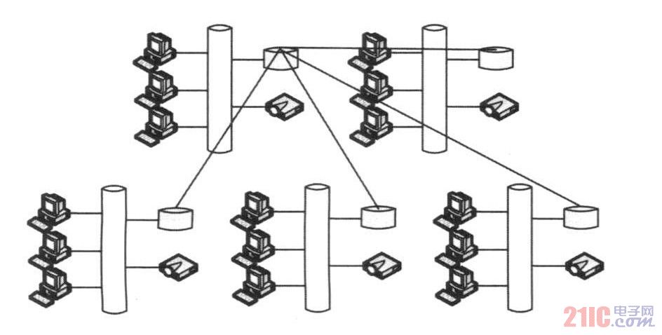 西安某铁路公安机关具有线长、点多的特点,它是按照铁路站点与站点之间的关系进行分布的,每个站点是局域网,它们之间进行连接组成广域网,其计算机网络结构如图2所示。