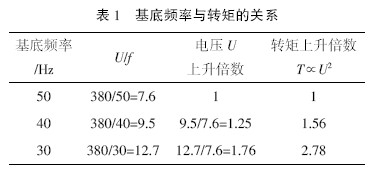 (2)为什么减小基底频率提高起动转矩是较有效的呢?具体如表1 所列。