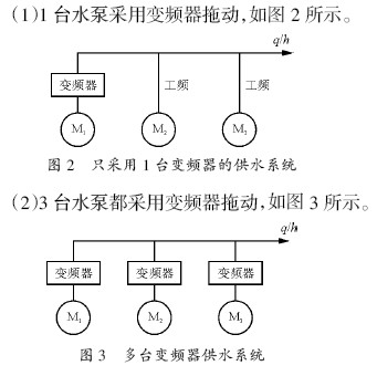 8)多台水泵并联恒压供水(例如城市自来水厂的清水泵、中大型水泵站、供热水中心站等)的变频技术改造方案常见的有以下两种。