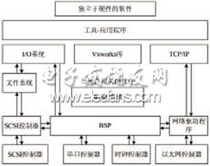 VxWorks操作系统将所有硬件的功能函数分别放到一系列库中,这些库就被称为板级支持包BSP。BSP是连接VxWorks操作系统与硬件平台的一个接口软件包,在引导系统、支持系统运行过程中扮演着重要的角色,首先,通过BSP可以生成引导操作系统的bootrom;其次,引导行工程的建立基础就是BSP;较后,BSP具有与用户交互的作用,可以提供一个基础的硬件调试环境。BSP还可以使VxWorks运行于特定的硬件平台,如ARM、PPC、X86等,它包含了一系列与硬件相关的函数,完成针对硬件的基本输入与输出操作,可以使上层程序员在不用熟悉硬件的情况下进行编程。例如,一般它完成以下操作:目标板硬件初始化、内存控制器初始化、堆栈初始化、外围设备初始化(I/O、Interrupt……)、异常向量处理、CACHE操作、硬件设备的底层驱动、定时器驱动、串口驱动、END网络驱动、FLASH驱动、LCD驱动等。