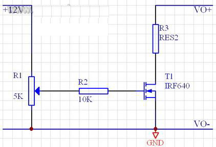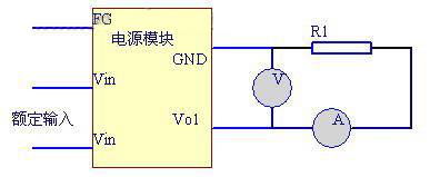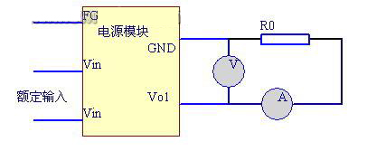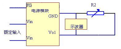 图中R3 表示一个能产生两倍于额定负载的电流(即此时R3 的阻值为额定负载的一半),VO+和VO-分别接开关电源的输出正端和负端。