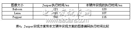 下面是使用jasper软件和本硬件实现对几幅标准图像(大小512×512的灰度图像)编码的时间比较。