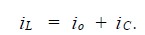 注意到在输出部分,电感电流在电容C和负载之间分割,有:
