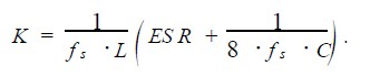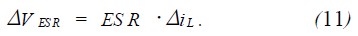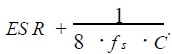 计算第二部分,对于一般电容,都具有串联等效电感和串联等效电阻(其实还有并联等效绝缘电阻)。串联等效电感只在较高频率时起作用,在分析开关频率时可以将其忽略,但必须考虑的是串联等效电阻ESR.电流ΔiC流过ESR时,会在ESR两端产生电压降,其值为: