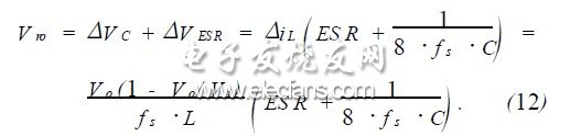 ΔVESR也会作为纹波的一部分表现在输出端上,所以总的纹波表达式为式(10)和式(11)的和,即: