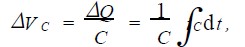 首先计算第一部分。当ΔiC流过理想电容C时,在C两端产生的电压变化: