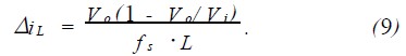 ΔiL为线圈上纹波电流的绝对值。将式(5)和式(6)代入式(7),整理得:
