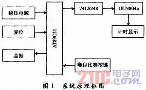 篮球比赛计时的准确性和计时的精确度是要求很高的,而单片机在这方面有着出色的表现。该系统采用频率为12 MHz的芯片,整个系统由按键、计时显示、报警,箭头方向等部分组成。该系统组成方框图如图1所示。