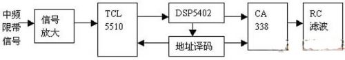 实现带通抽样,使用DSP5402作为基带信号处理,基本框图如图3所示。