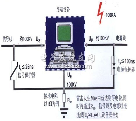 4)通信网络系统:引入加油站的ISDN等通信线路通常也是由户外架空明线引入的,并且通常未安装专用电涌保护器(SPD)做雷电防护措施。