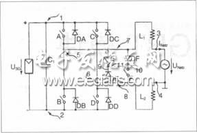 先来看单相并网逆变器的漏电流分析的模型(如图8)是如何解决单相并网逆变器的漏电流问题的。