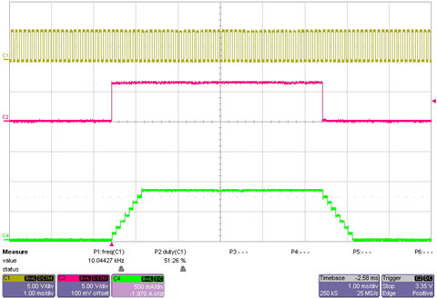 图 2 10 kHz 时钟频率时的 LED 开启和关闭情况