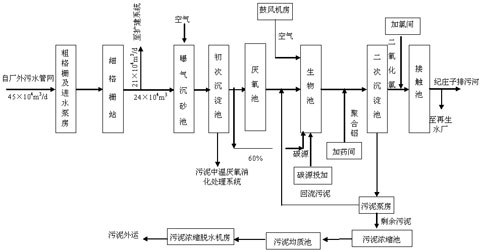 纪庄子污水处理厂升级改造工程的工作内容包括改造老系统曝气沉淀池、改造老系统初次沉淀池集配水井、改造老系统初次沉淀池、改造老系统初次沉淀池为厌氧池、改造老系统生物池、改造老系统污泥泵房、新建老系统接触池、改造老系统加氯间、改造扩建系统初次沉淀池为厌氧池、改造扩建系统生物池、新建扩建系统接触池、改造扩建系统污泥泵房、新建加药及碳源投加间、新增除臭系统。污水和污泥的处理工艺流程如图1所示。