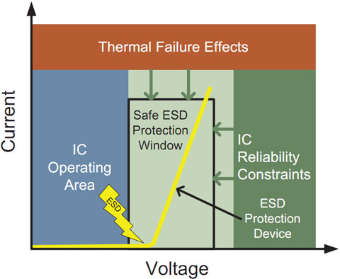 另外,先进的系统级芯片(SoC)设计都是采用几何尺寸很小的工艺制造的。为了优化功能和芯片尺寸,IC设计人员一直在不断减少其设计的功能的较小尺寸。IC尺寸的缩小导致器件更容易受到ESD电压的损害。