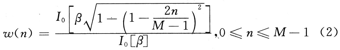 常见的窗函数有矩形窗、巴特利特窗、汉宁窗、哈明窗、布莱克曼窗、凯泽窗。其中,凯泽窗提供了可变的过渡带宽。本文采用凯泽窗对FIR滤波器进行设计,其窗函数表达式为: