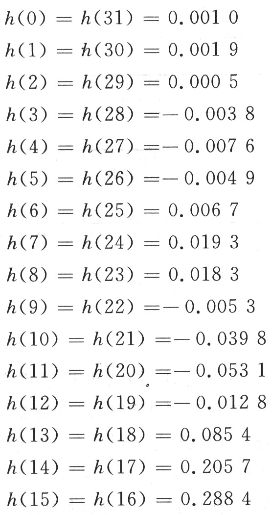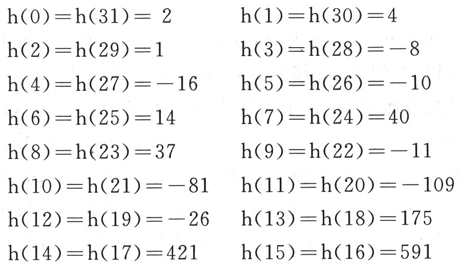 式中:x(n)为输入;y(n)为输出;h(n)为滤波器系数。