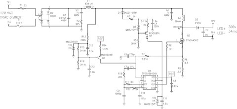 图 2 降压调节器实现一个简单的离线LED驱动器