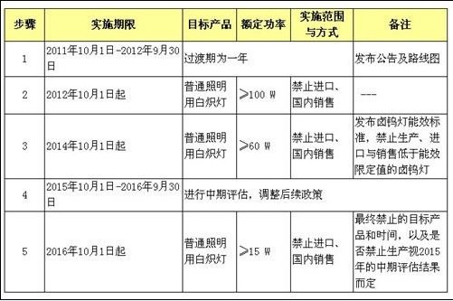 中国淘汰白炽灯计划阶段实施表