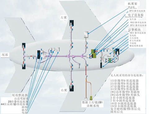连接器是一种在航空、航天等军事应用系统中几乎无处不在的重要基础元件,而飞机(飞行器)以及航空电子设备系统则是军用连接器较大和较集中的应用领域,连接器在飞机和航空电子设备系统中起着传输信号或传输功率的互连作用。无人机(Unmanned Vehicles, UV)由于在情报侦察、目标捕获、目标攻击等方面的优势日趋突出,对于国防越来越重要,故成为军事强国大力发展的武器装备。与有人驾驶飞机相比,智能化程度高、技术更复杂、工作环境更恶劣,因此对包括连接器在内的元器件提出更加苛刻要求。