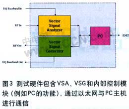 测试仪器需要产生和分析基于正交调制(如IQ调制)的信号。VSA(vectorsignal analyzer,矢量信号分析器)分析捕捉DUT发射信号,VSG(vectorsignal generator,矢量信号发生器)用于对DUT的灵敏度和对非理想信号的解调能力进行测试(如图3所示)。
