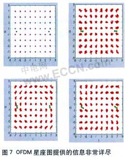 星座图(如图7所示)能够提供很多相关信息用作设计参考,通过相位、增益和功率压缩等信息能够帮助我们缩短产品设计周期和DVT(device verification testing)阶段所需的时间。