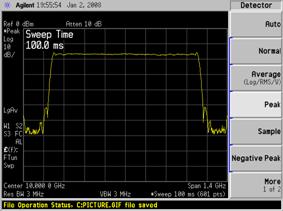 时间:3 秒(RBW 3 MHz) 时间:91 秒(RBW 1 kHz)