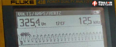 某型号高频UPS的电池变换器采用高频Buck/Boost拓扑结构,变换器缺少必要的滤波装置。因此充电电压和电流耦合大量高频分量,在现场实测数据如下图: