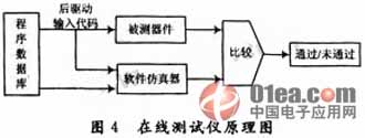 后驱动技术的发展,促进了测试技术和仪器的发展,开辟了现代电子测试维修的新途径,改变了传统的装备测试维修方法。后驱动技术的具体应用就是电路在线测试仪。其原理如图4所示,测试仪以测试程序库为基础,瞬间强制性地在被测器件的输入端施加驱动信号,测试其实际输出信号,并与标准代码进行比较,结果一致时,则认为被测器件功能正常,结果不一致时,则认为被测器件功能异常。