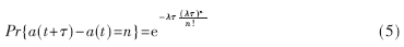 其概率分布如图4所示,由此可知在时间间隔τ之内,到达λ个数据包的概率较大,因此对于泊松分布而言,在(3)式中: