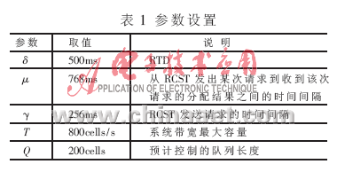 (3) NCC对于接收到的带宽请求全部给予分配,实际上这种情况仅当系统未发生阻塞时才成立,但对于阻塞的处理需要考虑一定的阻塞算法,而这不在本文涉及内容之内。此外,本文提出的算法在系统发生阻塞时,仍能对MAC队列长度起到控制作用。