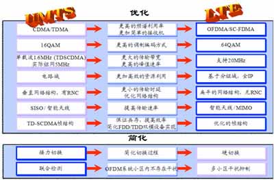 图1 TD-LTE与TD-SCDMA关键技术对比