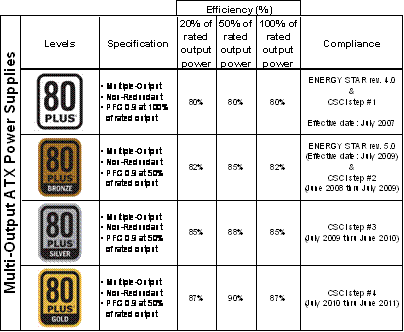 表1:80 PLUS多路输出台式电脑电源能效目标