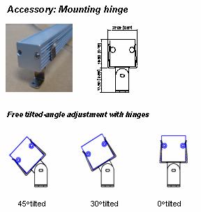 图5所示为线性照明灯具E-Skyline MI750的照片。这是一个高质量、高效线性灯具,适用于室内装饰照明和普通照明应用。有3种类型的光束角可用:15°、60°和120°。工作时,E-skyline MI750的功耗为6W,极好的热管理设计能使表面足够凉爽(在50℃以下)。板上驱动器设计有助于实现仅用一个60W/24VDC电源对10个E-Skyline灯具的串行连接,这种电源可以很容易在隔壁的电器商店买到,进而降低电源成本。倾斜角可调的铰链可用来安装E-Skylines,如图6所示。