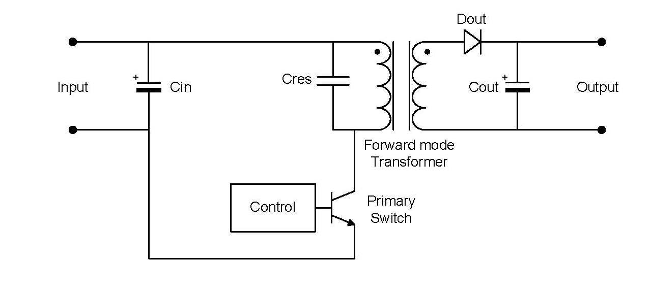 图1. RDFC拓扑结构的主要元件,其中的谐振电路由一个作为初级开关的BJT和谐振电容器Cres组成。谐振电容器Cres 与变压器磁化电感进行“谐振”,以实现全谐振开关。