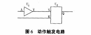 图6是一个电流继电器的触发电路。U1是一个驱动器,U2是触发器。U1的输出端Y驱动U2的置位端S。这条线路受到干扰时,U2的Q端是否因为干扰而置位主要取决于三个因素:U1的输出端Y的实际电平和U2的输入端S的阈值;触发器U2的翻转时间;U1相应端的输出阻抗及U2相应端的输入阻抗。