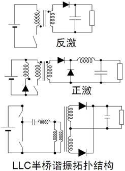 采用AC-DC电源的LED照明应用中,电源转换的构建模块包括二极管、开关(FET)、电感及电容及电阻等分立元件用于执行各自功能,而脉宽调制(PWM)稳压器用于控制电源转换。电路中通常加入了变压器的隔离型AC-DC电源转换包含反激、正激及半桥等拓扑结构,参见图3,其中反激拓扑结构是功率小于30 W的中低功率应用的标准选择,而半桥结构则较适合于提供更高能效/功率密度。就隔离结构中的变压器而言,其尺寸的大小与开关频率有关,且多数隔离型LED驱动器基本上采用“电子”变压器。