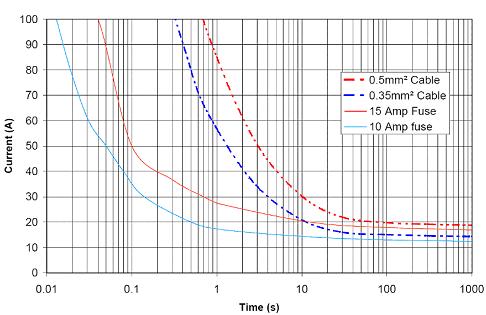 熔断器的工作原则是一个简单的I2R与时间的关系。电流越大,熔断或开路时间越短。熔断器的功耗与通过熔断器的电流的平方成正比。当功耗过高时,熔断器熔断。这个特性同样适用于受熔断器保护的线束。当熔断器的“熔断”特性与所保护的线束相似,只是处理电流能力略低时,熔断器是一个理想的选择。